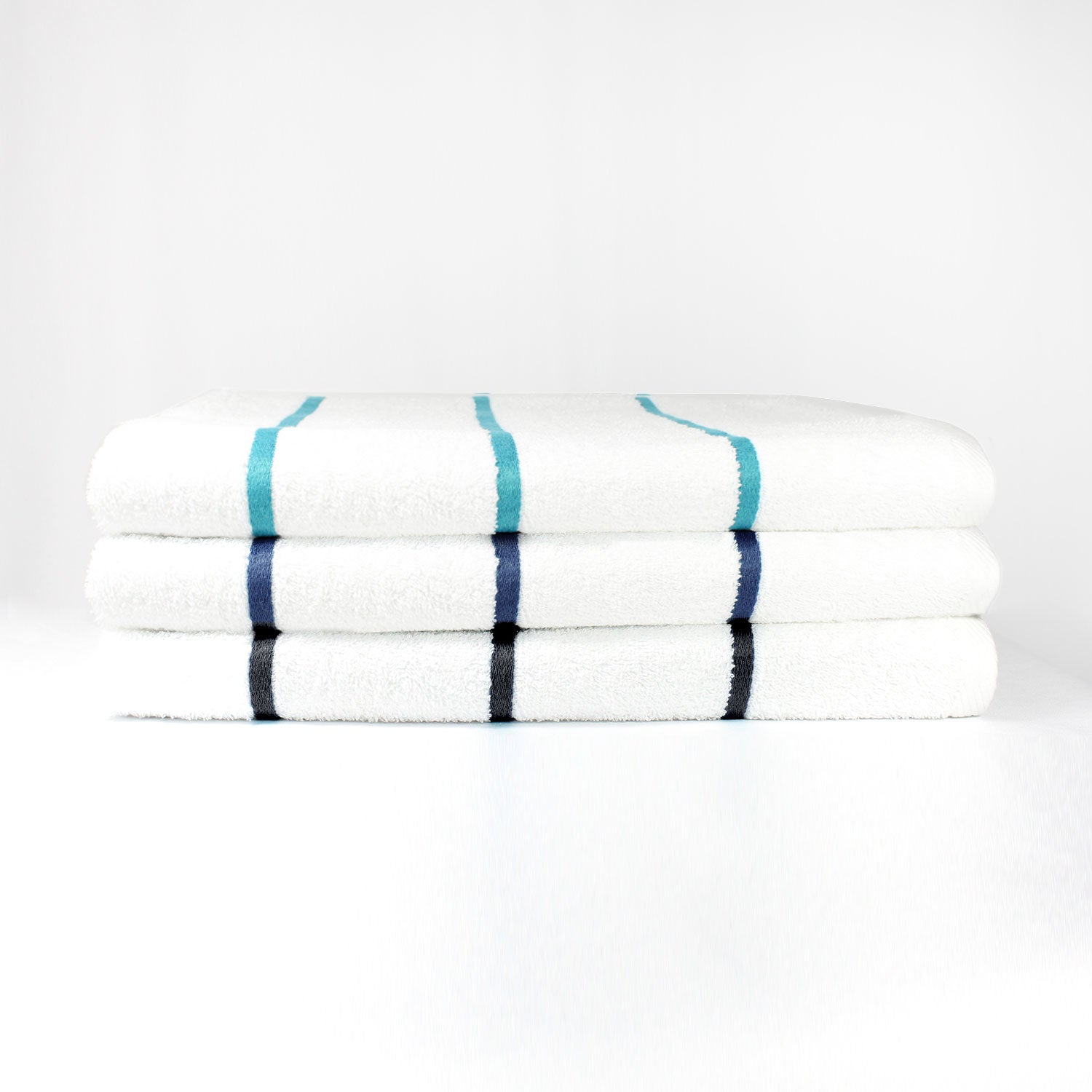 Each 35x68 towel has a solid color stripe repeated across the towel. Chlorine fastness for Hotel Pool Areas. Vat Dyed with fade resistant bright colors. Perfect for spa, gyms, resorts, time share, condominium, beach parties, and home use. Please call for shipping rates on larger volume orders.