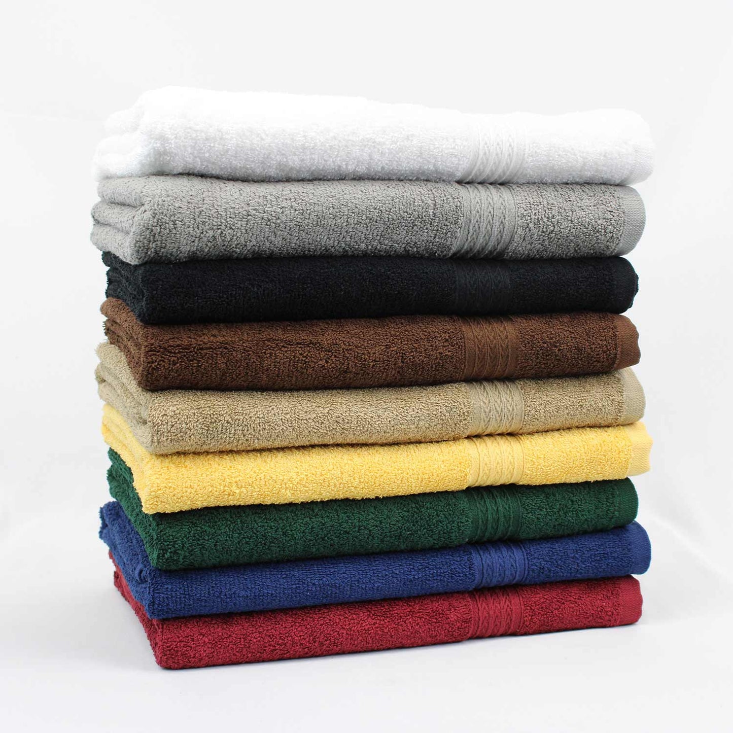 Wholesale Towel carries the popular 27x54 Color Bath Towels 14 lb/dz. They provide an excellent premium quality color bath towel for athletic departments. hotels and motels. These towels are popular as exceptional shower towel & gym locker room towels. They are double needle stitched to avoid fraying and give you the best quality product possible. Made of 100% ring spun cotton with a fancy dobby border. Top-grade Cotton is used in the making of these towels to ensure high comfort level, become even softer after the first wash. These towels provide optimal coverage, absorbency, versatility. Use on the Beach or Poolside as a vacation accessory.