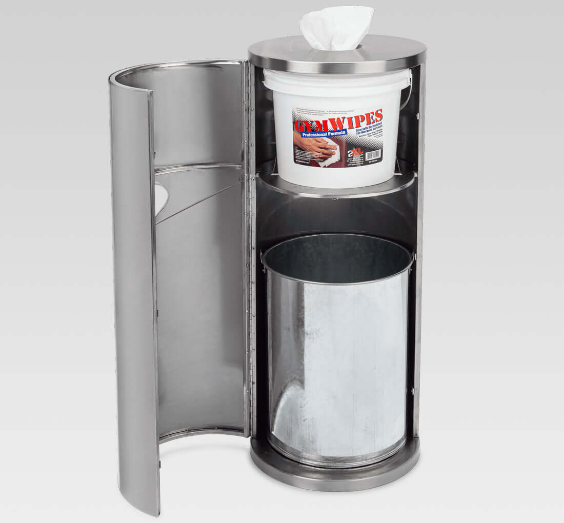 The G4 Stainless Stand is an gym wipes dispenser that is ADA-compliant. It is a sleek unit that prioritizes cleanliness by displaying wipes and storing wipe waste in an 8.5-gallon trash bin. It is composed of AISI 304 stainless steel which makes it highly resistant to rust, corrosion, dents, scratches, and extreme temperature changes. The G4 is a stylish solution for any facility including hotels, fitness centers, rec centers, offices, and more. Extremely strong steel highly resistant to rust, corrosion, dents, scratches, and extreme temperature changes- perfect for high traffic use