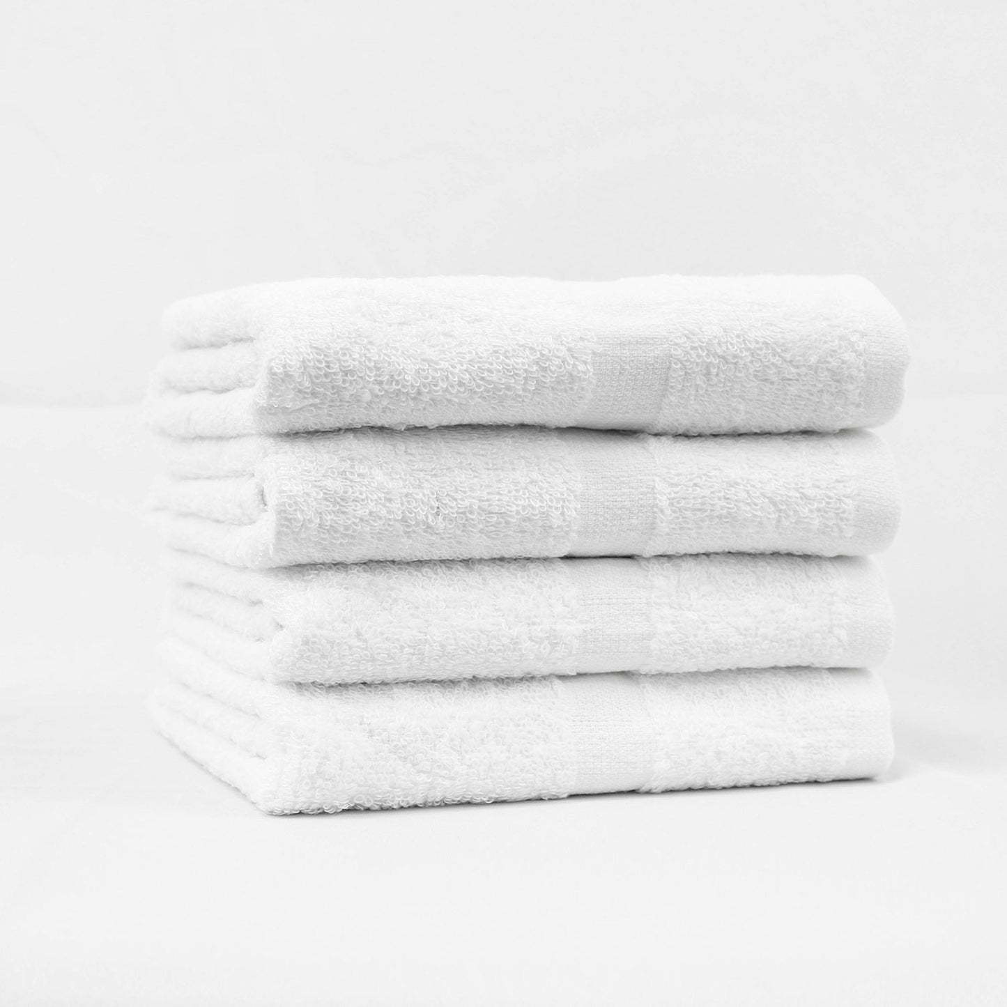 Warehouse Towel White Hand Towels are made of 100% ring spun cotton offer a luxurious look and feel. These soft and absorbent 16" x 27" hand towels are perfect for your hotel, spa, motel, club or gym. Also a great towel for the weight room, tanning bed, home or other practical uses. Cotton terry towels are an exceptional value; they're are made of soft, luxurious cotton specifically chosen for quality. They offer a fabulous finish, and feature an attractive dobby cam border. The optic white color will give your customer satisfaction during their stay.